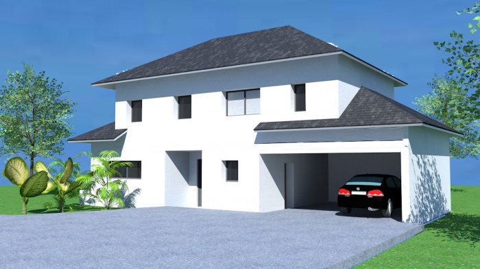 Construction d'une maison individuelle comprenant un grand séjour avec cuisine semi-ouverte, une entrée, un cellier, un bureau, une suite parentale, 3 chambre enfants, une salle de bains et une mezzanine.