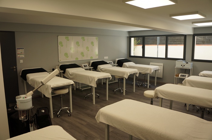 Transformation d'un ancien magasin de bricolage en école privée d'esthétique sur deux niveaux.